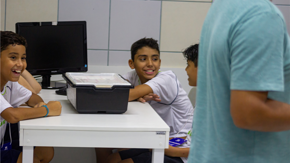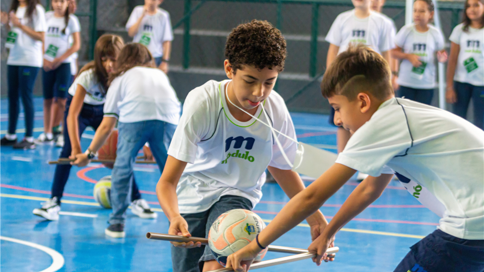 A aula inaugural de hoje teve circuitos de Educação Física pela quadra, experiências no Laboratório de Ciências e Oficina de Robótica.